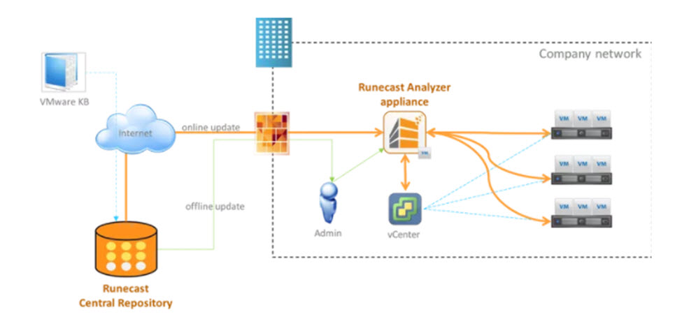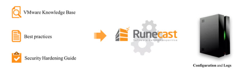 The really cool thing is you can stay up to date on industry issues that could impact your environment. Runcast is a virtual appliance (OVA) and can be updated from the internet or it can be updated via an ISO image (offline update). It is updated with information that has been mined from the VMware KBs and is used to proactively check log and configuration for issues in the virtual environment. It also has security configuration checks.